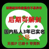 国内私人微信账号购买出售批发:已实名绑卡3年女,带圈带账单,稳定抗投诉,功能完好